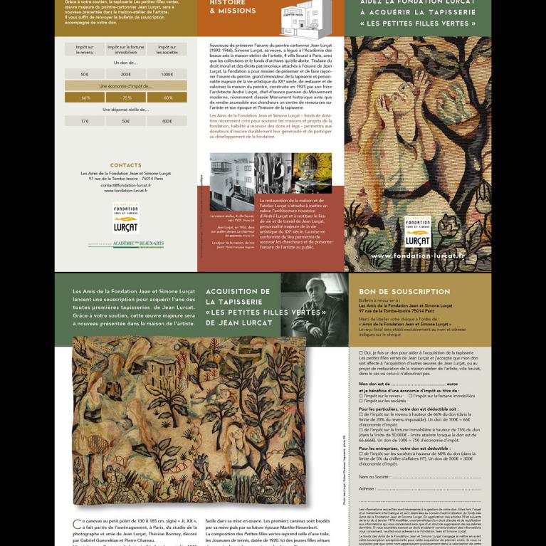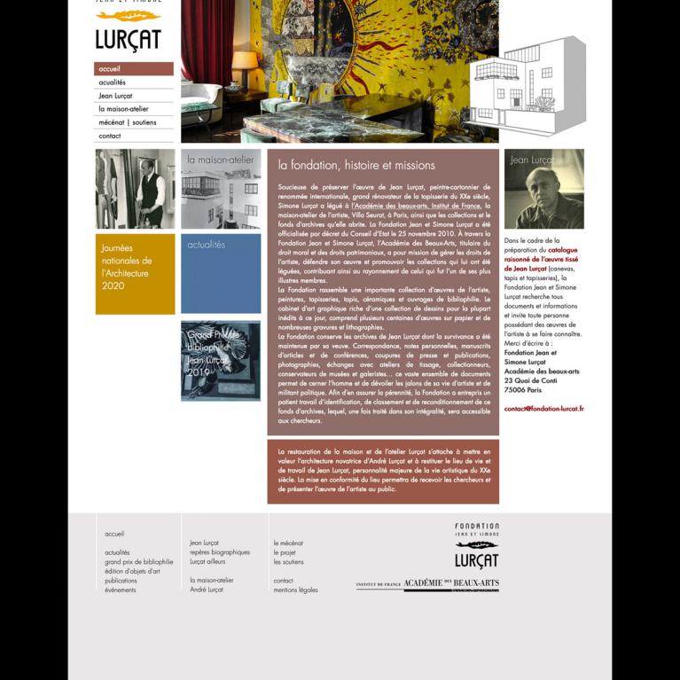 Dédiée au rayonnement de l'œuvre du peintre-cartonnier Jean Lurçat (1892-1966), grand rénovateur de la tapisserie du XXe siècle, la Fondation s'attache également à la restauration de sa maison-atelier du 14ème arrondissement de Paris, construite par son frère André Lurçat, autre grande figure du modernisme.